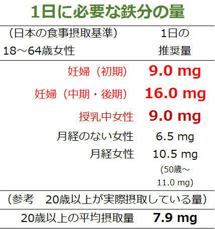 ということは、妊娠前から貧血予防のため鉄分を積極的に摂る必要があるのです。